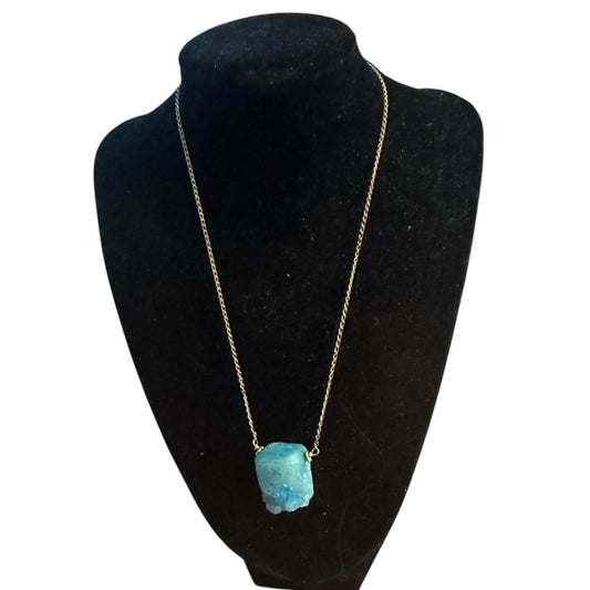 Elegant Vintage Gold tone Necklace with Blue Rick Pendant