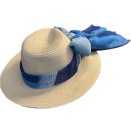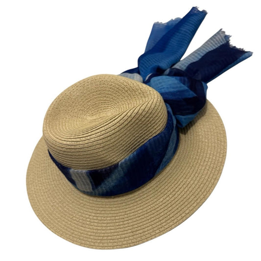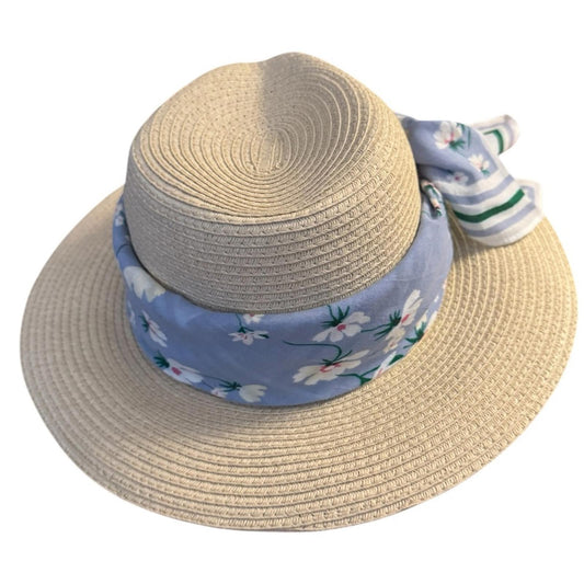 Elegant Tan Sun Hat with blue Accent