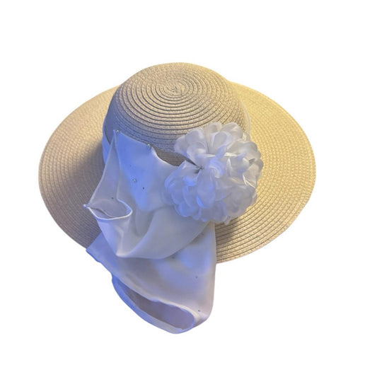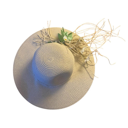Elegant Tan Sun Hat with floral Accent