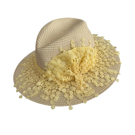 Elegant Tan Sun Hat with Yellow Accent