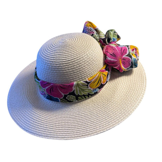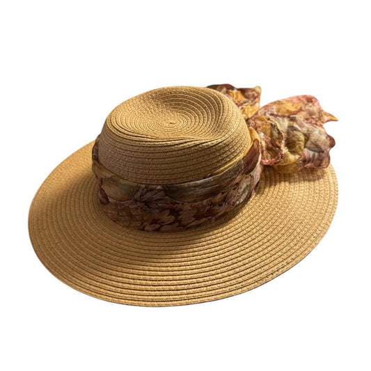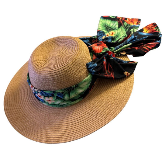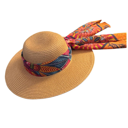 Elegant Tan Sun Hat with colorful Accent