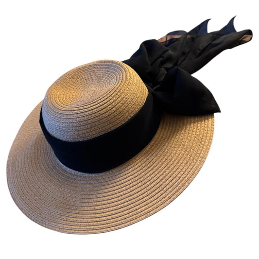 Elegant Tan Sun Hat with black Accent